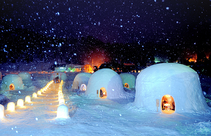 かまくらの中で食事を楽しめる冬のスペシャル企画。