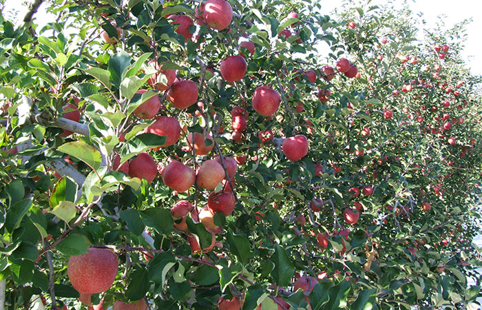 中野市は雨が少なく昼夜の温度差が大きいため果樹栽培の適地となっており、四季折々のくだものが楽しめます。