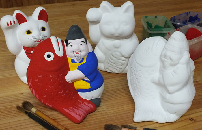 白い素焼きの創作土人形に、お好みの色や表情を付けてあなただけの土人形を作ってみませんか。